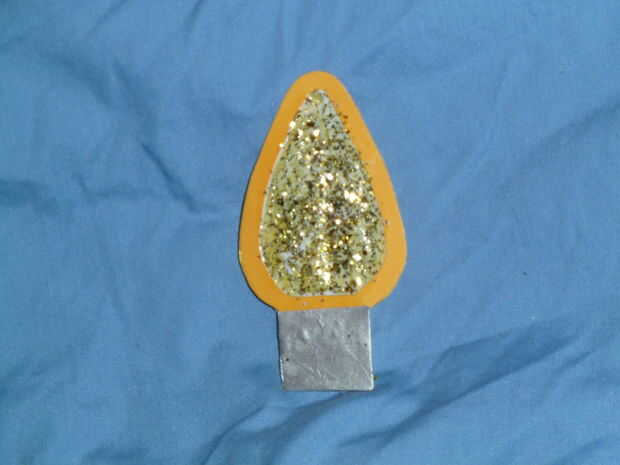 Ahora toma su papel de seda de oro o plata y cortar un trozo que es lo suficientemente grande para la base de la bombilla. Pegamento en y doble sobre la espalda. Repita esto para la otra bombilla y encolarlos.