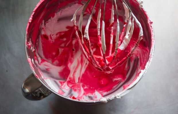 Se desmoronan las tiras de tocino cocido en la batidora de mano (para crear tamaños irregulares) y añadir colorante alimentario rojo. Mezcla con el ajuste de la velocidad media-baja hasta bien combinado, 4-5 minutos.