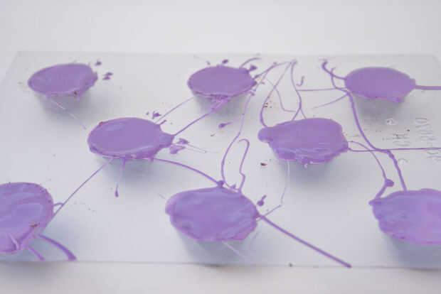 5. Retire el molde del congelador e invertir el molde sobre la superficie de trabajo. Los dulces deben abandonar el molde fácilmente.