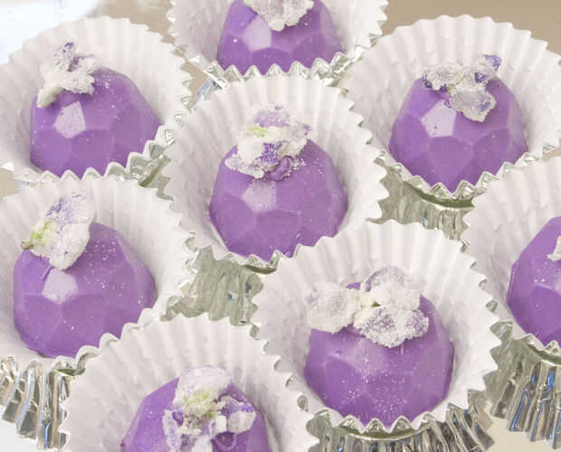 2. cada caramelo fue colocado en una taza de dulces de papel para completar la presentación.