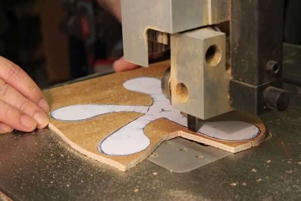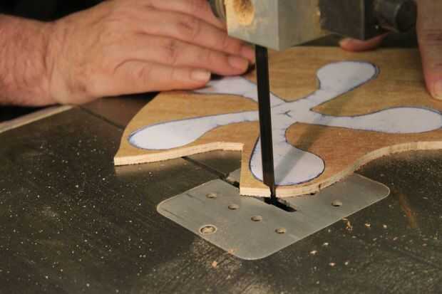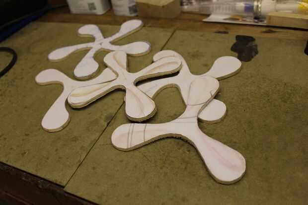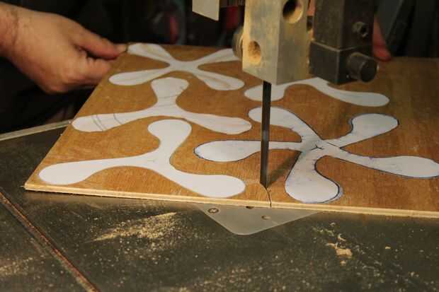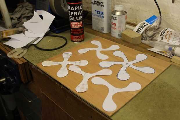 He utilizado spray pegamento para unir los recortes de las formas de boomerang a mi madera y utiliza mi sierra para cortar las formas. (Si no tienes una sierra de cinta debe poder cortar su forma con una sierra de su elección. Scroll saw, Sierra de marquetería, jigsaw) súplicas Si utilizas herramientas uso seguro del equipo de seguridad adecuado y como siempre si el no se siente enfocado pulsado hasta es.