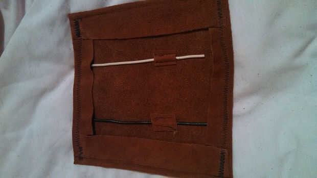 Ahora trazar el patrón en el cuero y cortar! Una vez haya terminado con el conseguir el cable y tira la envoltura exterior. Se necesitan cuatro pedazos de alambre que tienen la misma longitud de la lados y altura del plano. Una vez que termines con el alambre de corte puede coser en los laterales de su cuero. Busca a los cuadros de ayuda en esto. Luego coser las solapas superiores e inferiores. Asegúrese de que coser el borde.