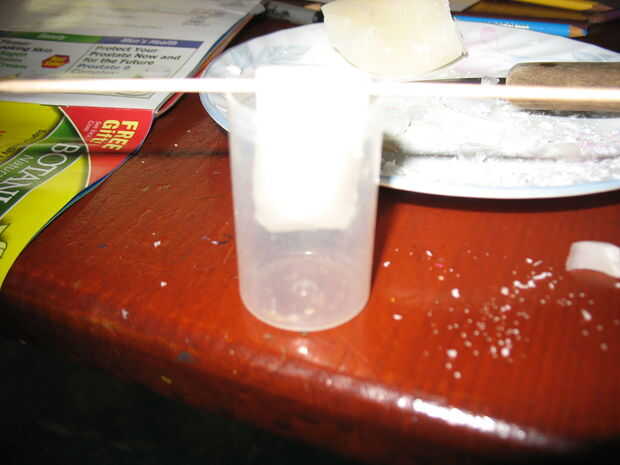 ok ahora vas a llenar el recipiente con yeso alrededor de la cera