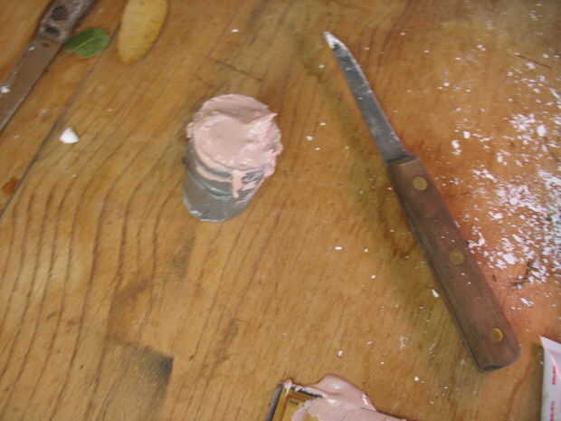 ok ahora mezcla el bondo y frotis en la cavidad en el yeso de la izquierda de la cera golpéelo sembrar allí no bolsas de aire
