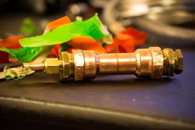 Mi versión de la upstem, que es una enrevesada combinación de conexiones de cobre innecesario que no encajan perfectamente, se muestra en la imagen 3. Hablaré más adelante.