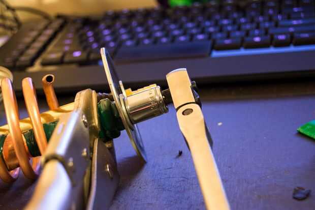 Imagen 4 muestra el método que uso para apretar todas las conexiones para los tallos y la parte superior. Pinzas con seguro y un zócalo son tus mejores amigos. Porque las conexiones roscadas son raras y no son hechas para ir más apretado, usted puede experimentar lo que yo llamo la rosca: la rosca ajuste hasta a medio camino a través de cuando atasco. No es cross threading, es justo que estos conectores no son hechos para aparearse entre sí: para otras tuberías. Además, los hilos son realmente apretados cueste lo que cueste porque deberían apretarse con el equipo de plomero viejo grande. Porque no pude apretar abajo usé cinta de para cubrir las pequeñas fugas que resultó y no han tenido un problema desde.