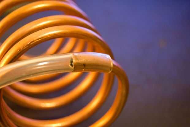 Esto parece bastante simple pero luché con él porque un. No tengo un tubo adecuado de flexión herramienta y b. Yo inicialmente más lo complicado. Utilizar el tubo de cobre de 1/4" y hacer una bobina suficientemente pequeño en diámetro para caber a través de la boca de la jarra y aproximadamente una pulgada más corta que la jarra. No necesita ser perfecto, solo efectivo. Evitar torceduras tanto como sea posibles, pero puede suceder. Alicate plano lo elimine los pliegues. Usé mi herramienta de desbarbado como una herramienta de formación alrededor de la cual había doblado el tubo lentamente y funcionaba bastante bien una vez que comenzó. Si usted necesita más peso mientras que a partir de la curva, meter un destornillador en el final.