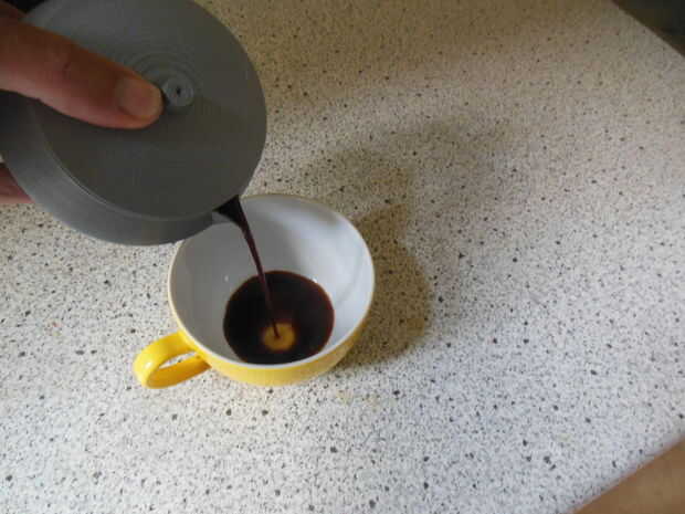 Cuando el agua ha atravesado, coloque la tapa sobre la olla y vaciar. Algunas bebidas directamente como ristretto o espresso, pero muchos le gusta mejor con agua caliente o leche caliente. El extracto también puede ser utilizado al día siguiente o más tarde cuando se almacena en la nevera. Se recomienda el precalentamiento de la taza. ¡ Disfruta tu café!