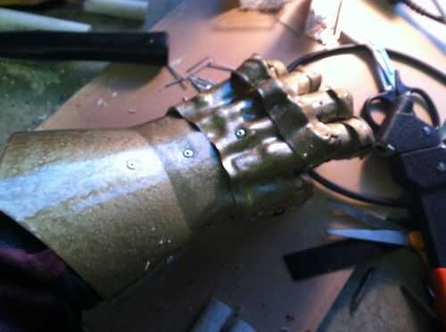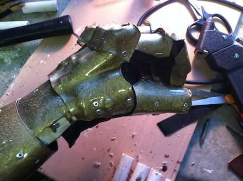 No he tenido oportunidad de trabajar con los guanteletes mucho todavía. Se puede utilizar en una producción de la etapa. Al utilizar el poliestireno de alto impacto y cuero y remaches, creo que toman mucho abuso con poco daño.