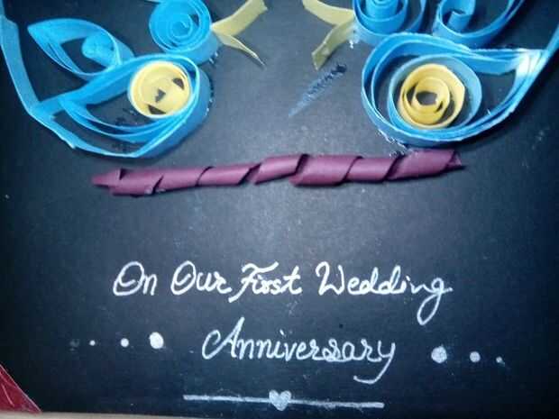Bonita y fácil tarjeta de felicitación para aniversario de bodas (1 / 3 paso)