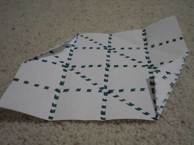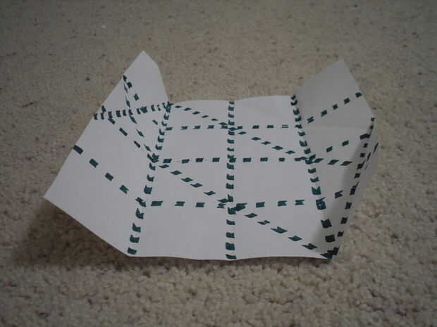 6. Haga dos dobleces de triángulo para ambos por lo que se encuentra en la línea de un centro.
