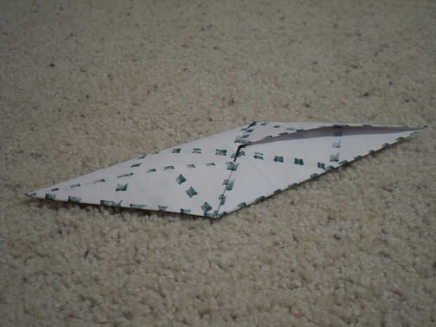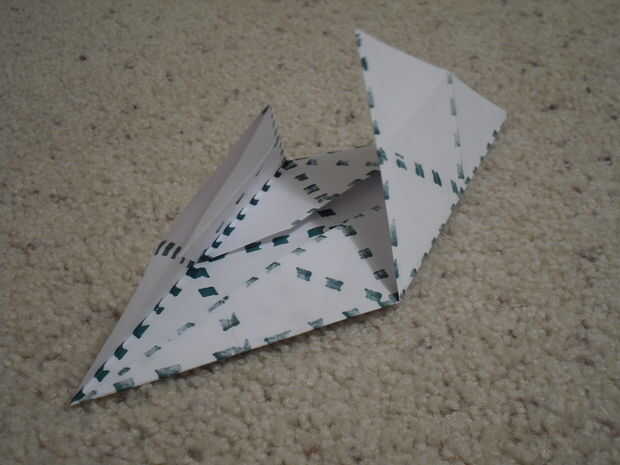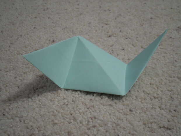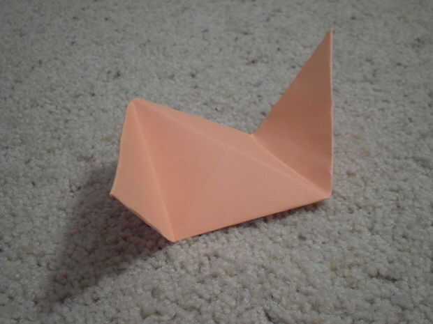7. Inserte que dobla del triángulo en el doble pliegue volteado como tal.
