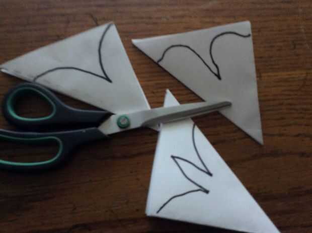 Sostener el triángulo así el borde sin cualquier pliegues en él es en la parte superior. Utilice un lápiz o un marcador para marcar pétalos de que probar diferentes tipos de pétalos puntiagudos, hoyuelo redondo terminado, completamente redonda con un flequillo como borde (no mostrado)