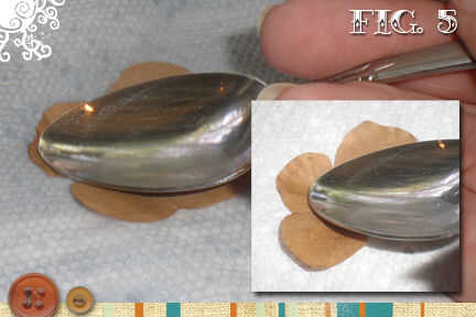 Para obtener el rizado ligero y que arruga en los pétalos de la flor, tomar la cucharadita y coloque el extremo de uno de los pétalos de la flor húmeda. Con una presión moderada Presione y tire hacia atrás la cucharilla parar al llegar a la mitad de la flor.