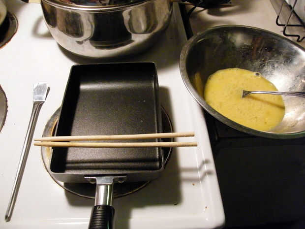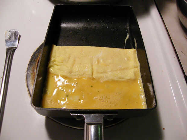 Para hacer la tortilla, se puede utilizar cualquier receta para hacer tortilla regular, sin embargo, en lugar de otro utilizar pan redondo regular, tamagoyaki utiliza pan rectangular.