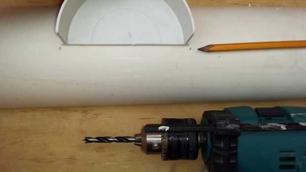 Ahora, utilizamos el 1/4 en broca. Te recomiendo el pedacito de taladro de madera, debido a la punta afilada, cual ayuda a mantener en su lugar cuando perfore.