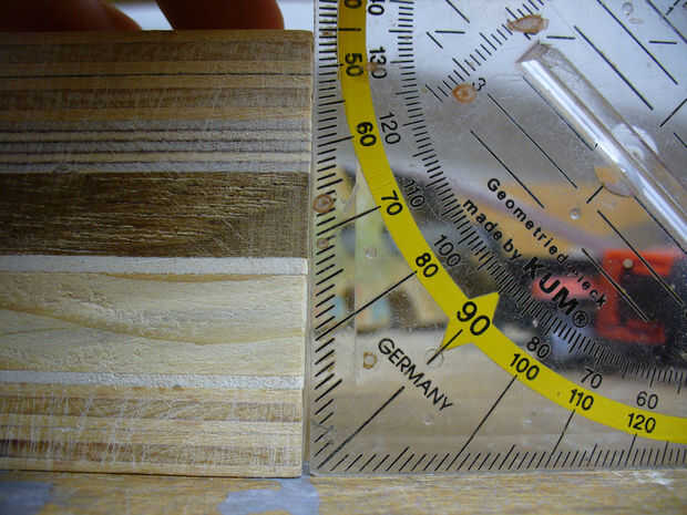 -Si bien lijado siempre verifique si tiene ángulos rectos, hacer con una escuadra. Marca que los lugares eran que necesita moler madera más apagado y hacerlo