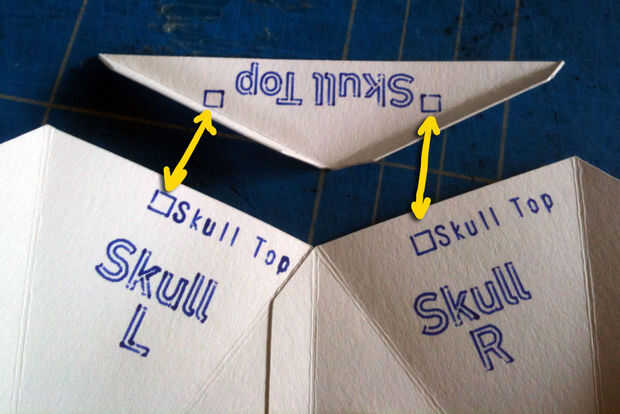 He marcado todas las piezas con un nombre y utiliza dos símbolos para marcar dónde alinear las piezas a encolar.