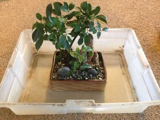 1. Coloque el árbol y la maceta en un recipiente lo suficientemente grande para el contenido. Ir con al menos dos veces el tamaño de lo que crees que necesitarás.