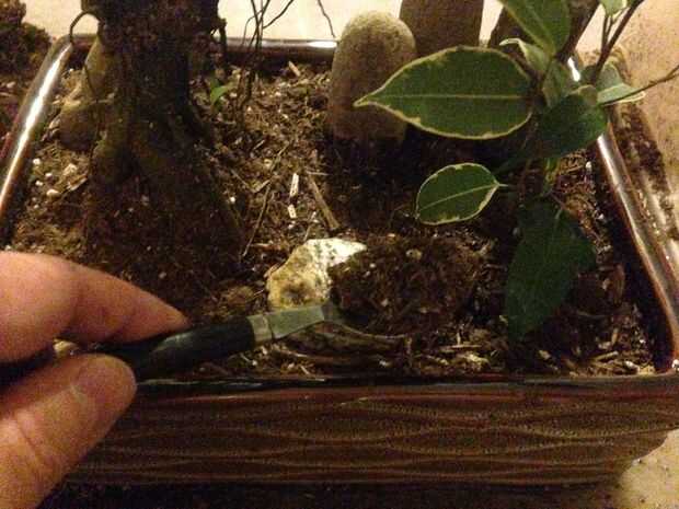 1. use una cucharadita viejo a parte pequeñas áreas de suelo para agregar elementos de diseño, tales como piedras interesantes. No solo presionan en el suelo, esto comprime y no estimular el crecimiento de la raíz. Toque el suelo nuevo en alrededor de los elementos para dar la apariencia de haber estado siempre allí.