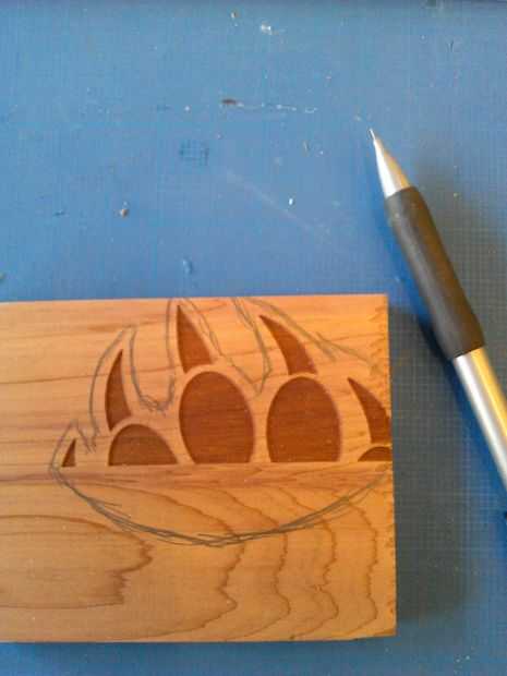Material: Un 'tiran' primer láser corte prueba en madera aromática ceder de garra de oso.