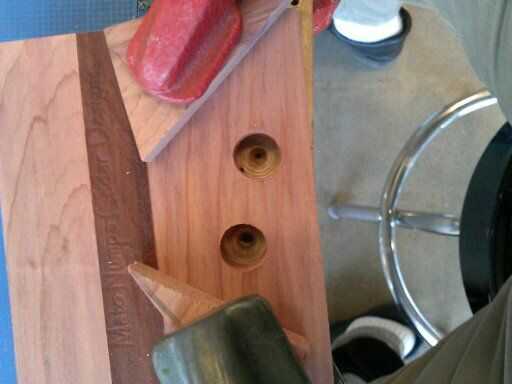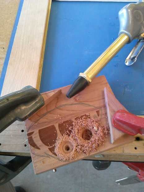 c). siempre Sujete su trabajo. No dejes que girar alrededor. Aquí es donde comienza el verdadero arte de la artesanía. Coloque un trozo de madera entre la madera que está trabajando y el tan no mar la madera.