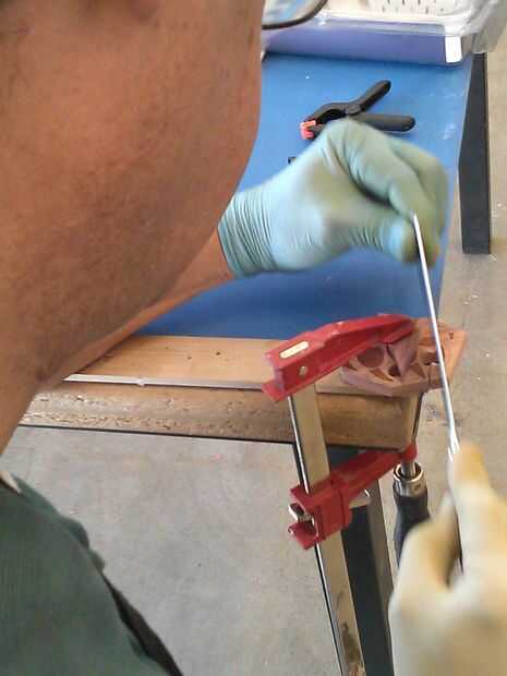 e). cuando se realiza un agujero; reclamp y vuelva a colocar sobre la mesa para taladro #2 y hacer lo mismo. Ahora, sigamos con el último paso de arena sculpting.
