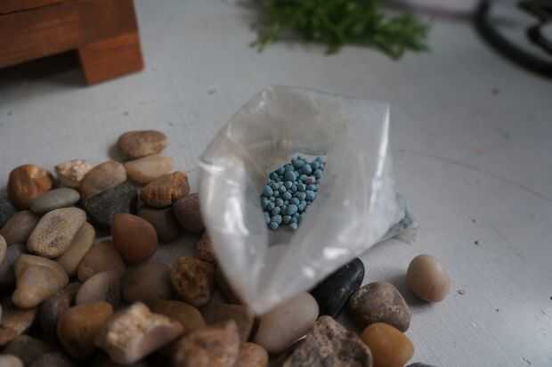Agregar 5 esferas el fertilizante granular azul, para bonsai, desarrollar más nuestras raíces de árbol.