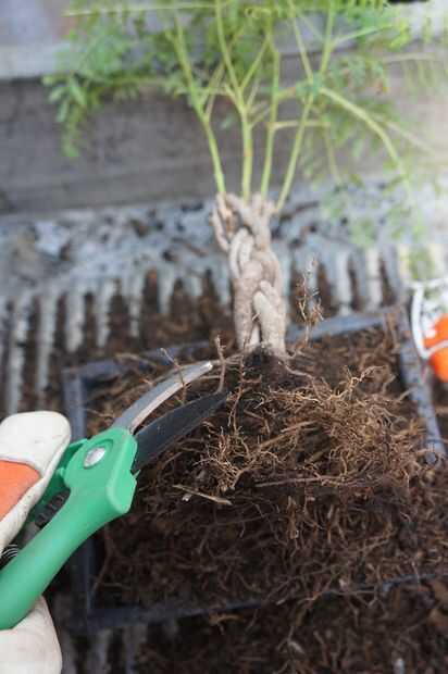 Corta aproximadamente un tercio de las raíces con nuestras tijeras de podar, sin miedo. Que se vuelvan a crecer.