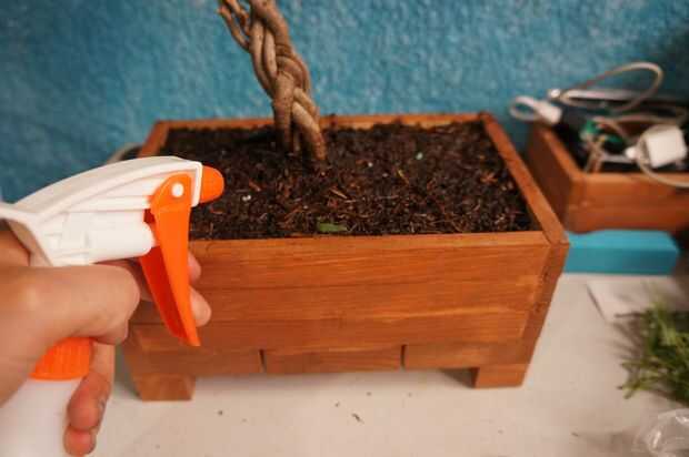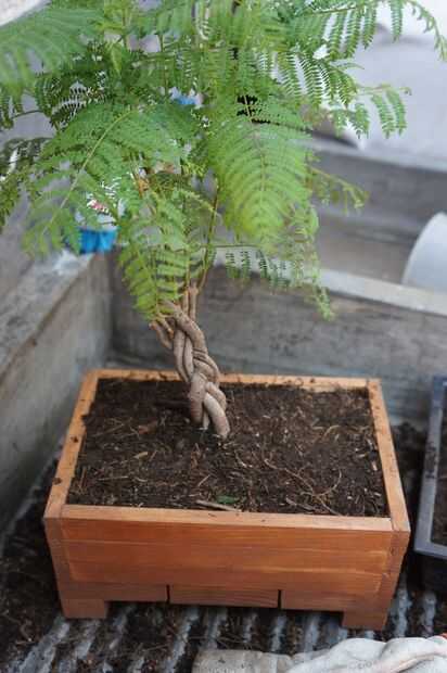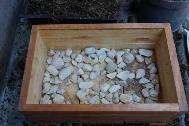 En la parte inferior de la caja, poner piedras, algunas tierras y nuestro bonsai. Al final, lo cubrimos con más tierra y hacer un poco de presión.