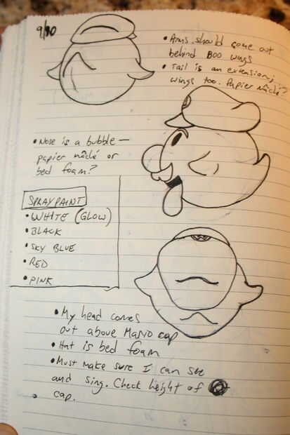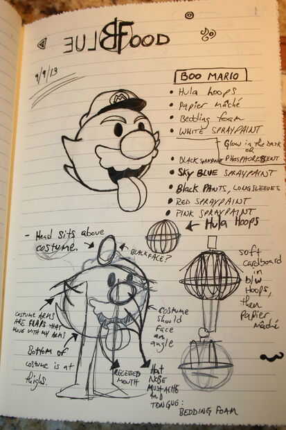 Paso, como siempre, es para romper el traje en formas simples y esbozar las cosas hacia fuera. Como se puede ver en las imágenes, que originalmente quería probar usando aros del hula como un esqueleto y la ropa de cama de espuma para el cuerpo. Esto no funcionó, pero era todavía bueno para sacar las cosas y tratar de analizar qué materiales necesitaría. Yo no soy el mejor artista del mundo, pero siempre me encuentro con que aprender a dibujar el personaje resulta más fácil visualizar cómo crear como un traje.