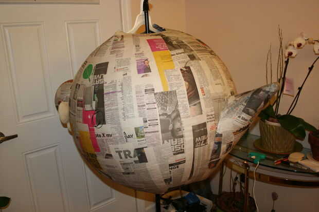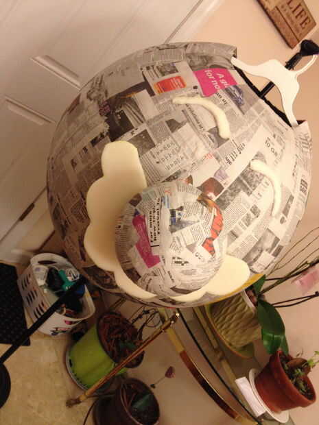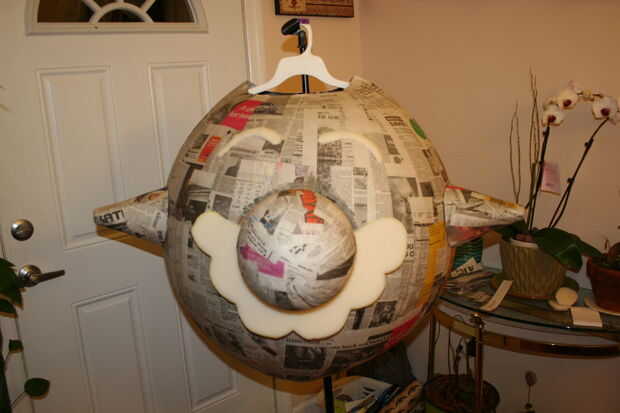 Para obtener el resto de las características me trazó mi plantillas de cartulina sobre una hoja de la espuma del lecho y recorto usando un cuchillo x-acto. Caliente pegué todas las características que iban a ser blanco en el cuerpo para prepararse para la pintura a pistola. Se puede ver está empezando a ver más como el producto terminado.