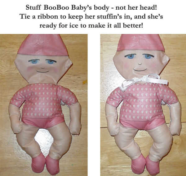 Y con eso, BooBoo bebé está listo para usar! Colocar hasta 3 cubos de hielo en la cabeza y dejar al bebé booboo beso la owies todo mejor.