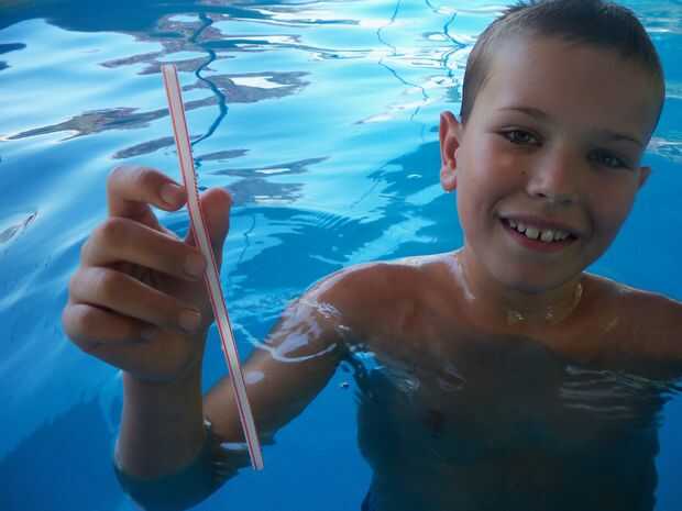 - Utilice tijeras para cortar el extremo largo de paja flexible. Corte ligeramente más largo que el extremo corto.