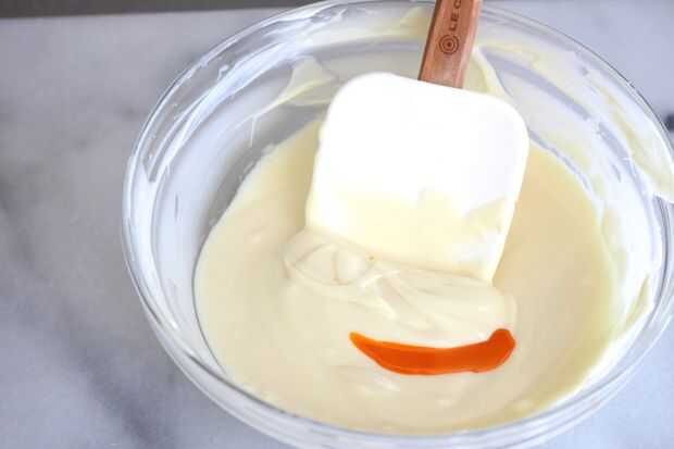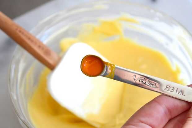 Para dos barras de chocolate blanco, he utilizado 1/8 de cucharadita de colorante amarillo.