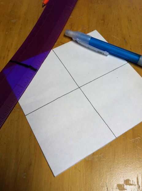 Usar su lápiz y regla para dividir el cuadrado en cuatro secciones (mina fueron 2 1/2 pulgadas).