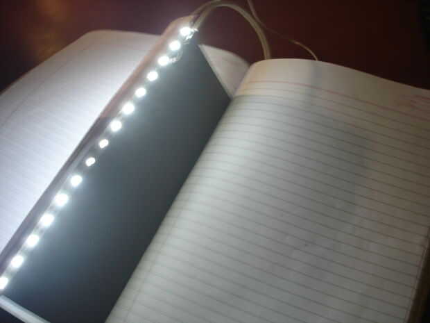 Esta lámpara de escritorio fresco se hace con LED franja de luces y arce. Cuenta con un diseño muy simple donde la madera está realmente en foco y tiene un control remoto que se conecta a la parte posterior de la lámpara. Esta lámpara sería genial en