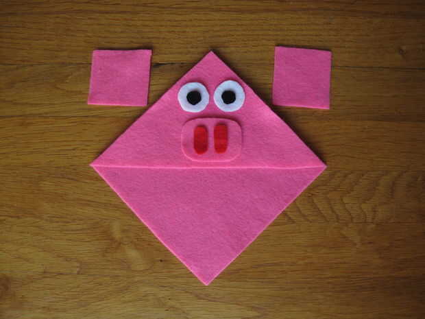 Para hacer un bookpiglet necesita recortar ojos y pupilas, una nariz y sus fosas nasales, lindo y una plaza y triángulo para la cabeza. Por último pero no menos importante, no olvides la cola como yo lo hice al principio.