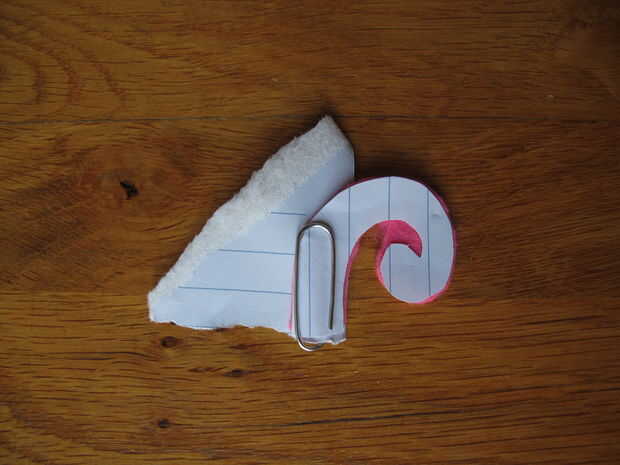 Cuando se utiliza un recorte de la plantilla puede conectar con un clip en un emparedado de papel de fieltro, para que no se deslice lejos. O utilizar un poco de paz de la cinta enrolle y pegar entre el fieltro y papel (para no cortar la cinta con sus tijeras de tela).