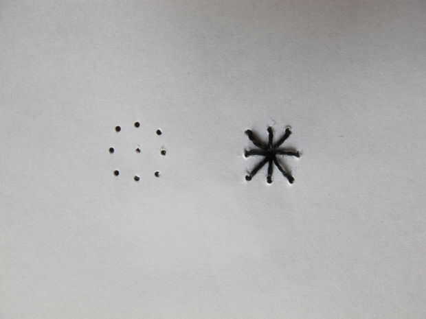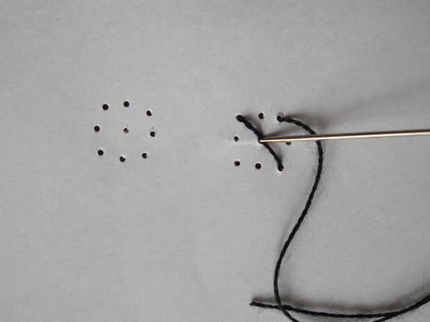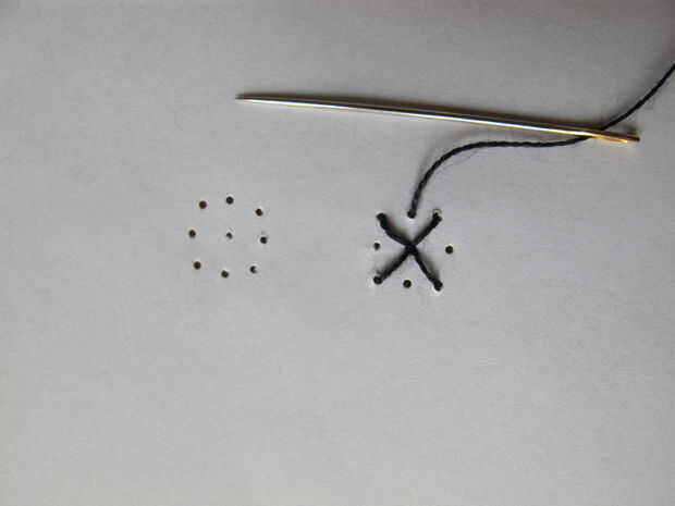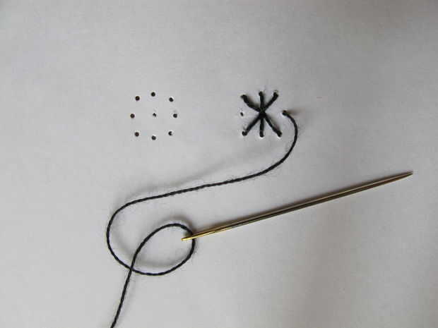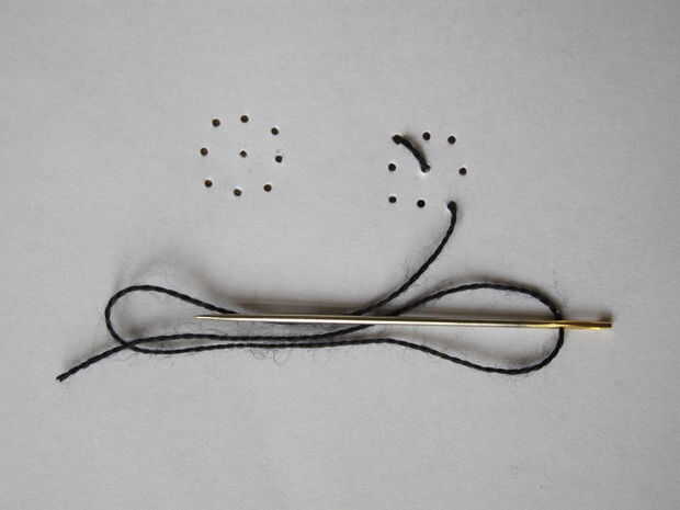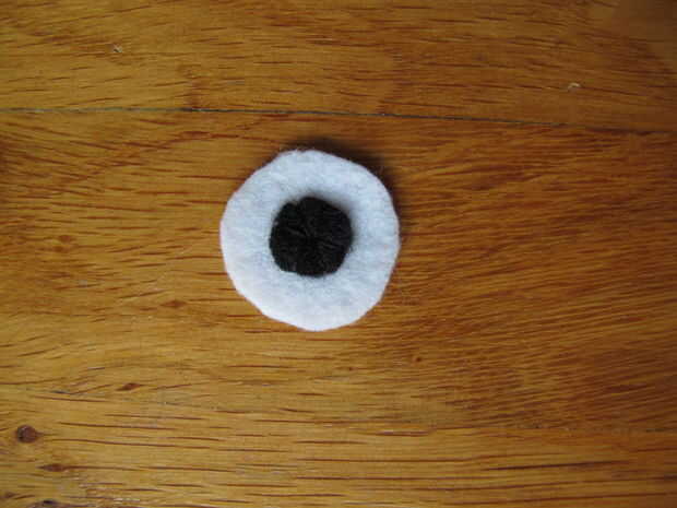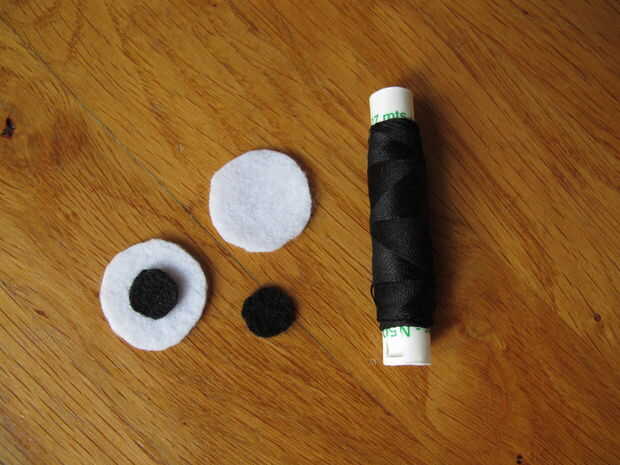 Con un hilo negro de coser las pupilas en los ojos. A partir de la mitad para que sea más fácil para usted mismo :)