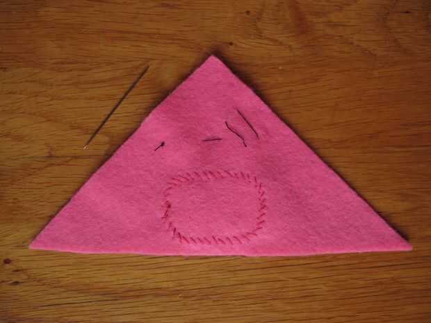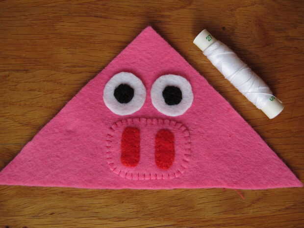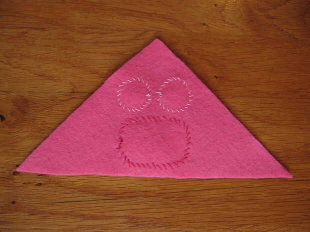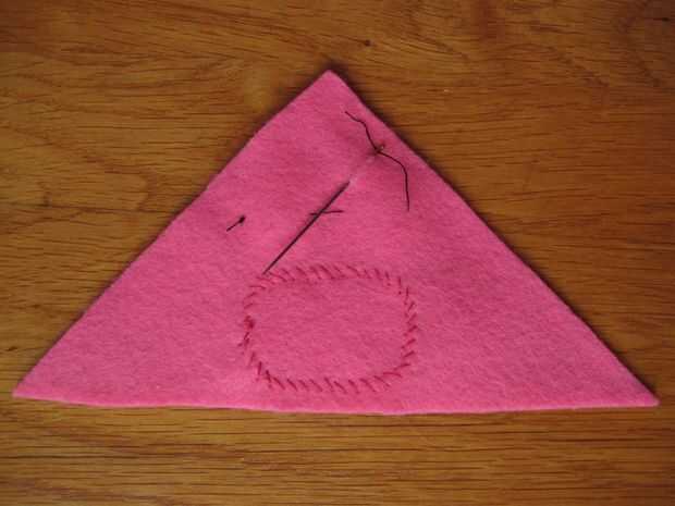 Recomiendo a engañar un poco utilizando un hilo extra y temporalmente cose en ambos ojos (cuadro 2). No tienes que hacer un nudo, al meter la aguja en el fieltro y tire el permanecerá en el lugar por el momento a través de la banda de rodadura. Después de cosido en los ojos basta con retirar la banda de rodamiento extra y se hará en ningún momento!