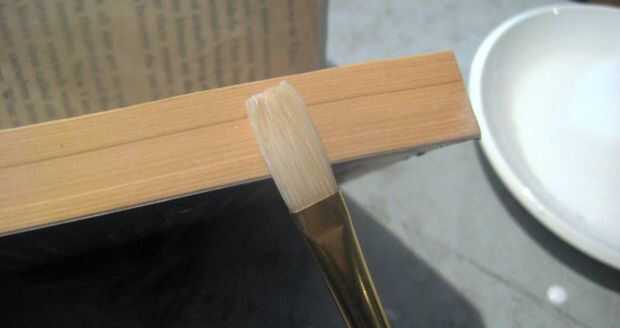 Unas cuantas páginas a la izquierda en la parte delantera, luego pega los bordes de las páginas juntos. He usado la bolsa de plástico para proteger la primera parte y colocar un ladrillo sobre el libro cerrado.