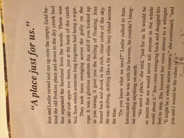 Usar la página de introducción de "Puente a Terabithia", uno de mis libros favoritos.