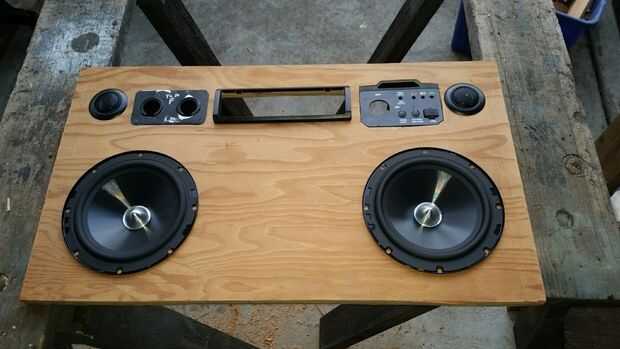 He presentado los componentes en un pedazo grande de cartón y vino para arriba con una cara gabinete mide 23,5 pulgadas de ancho por 13,5 pulgadas de alto. La profundidad final fue impulsada por la profundidad de la unidad principal. Si no tiene un reproductor de CD, entonces se podría definitivamente construido menos profundas. La profundidad total (frontal a trasera) es de 8 pulgadas... He utilizado chatarra 3/4 capas para la parte delantera y trasera asi la dimensión interior es de 6,5 pulgadas. La altura fue conducida parcialmente por la antena retráctil de Metra.