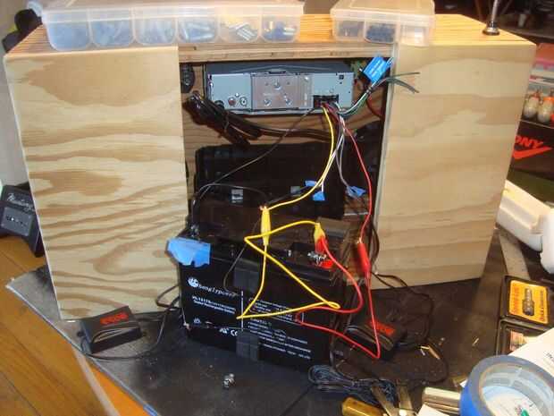 Nota: Una cosa no hicieron fue agregar los dos paneles traseros en esta época porque mientras la batería se puede quitar, tengo apretado cuando utilice controladores tuerca, destornilladores, pelacables y perfore agujeros guía para los crossovers que están a ambos lados de la caja. Lección aprendida pero demasiado tarde porque se pegan los paneles y biscuited sólidos! Un panel central perforada permite el enfriamiento y se quita fácilmente en caso de necesite llegar allí.
