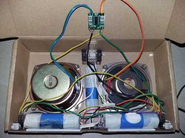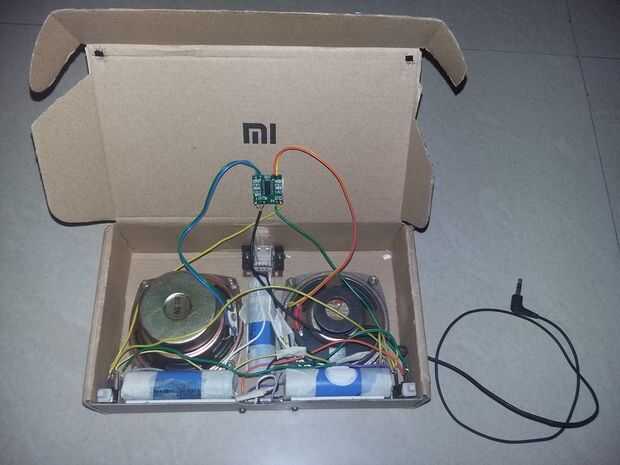 Quería mantener el Boom Box tan barato como sea posible, así que preferí un 3,5 mm cable de Aux, conectado directamente a la Junta de PAM8403 amp.