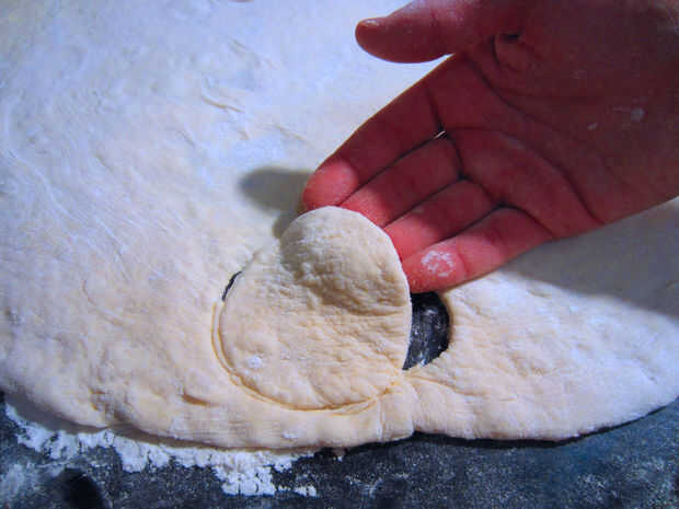 Puede utilizar cualquier cosa, si le temen a la falta de consistencia, taza, taza o cortador de la galleta va a funcionar. Si confía su skillz, puede seguir adelante y utilizar un cuchillo pequeño o un cortador de pizza. Usted quiere cortar pequeños círculos. Si no somos perfectos eso está bien, pero intentar su mejor!