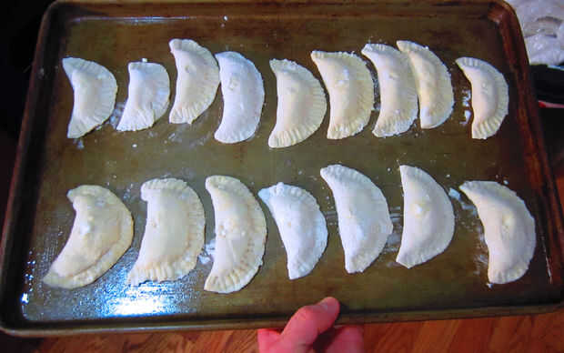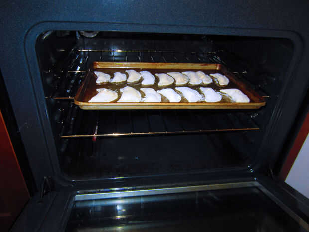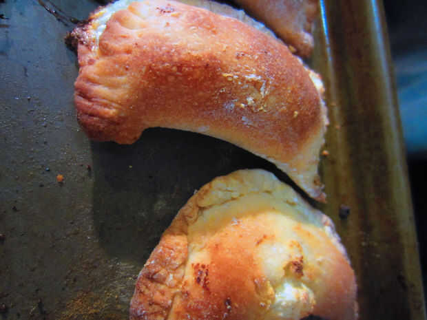 Una vez que están llenos, en línea les en una bandeja de hornear engrasada y hornee a 425. Después de diez minutos verás son sólidos. Sacarlos y poner una capa fina de aceite de oliva encima de cada uno. Hornear durante otros 10-15 minutos hasta que estén dorados en la parte superior.