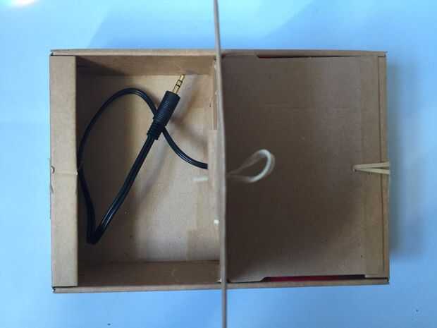Agrande el orificio central suficiente para alimentar el cable de audio a través de la división central.