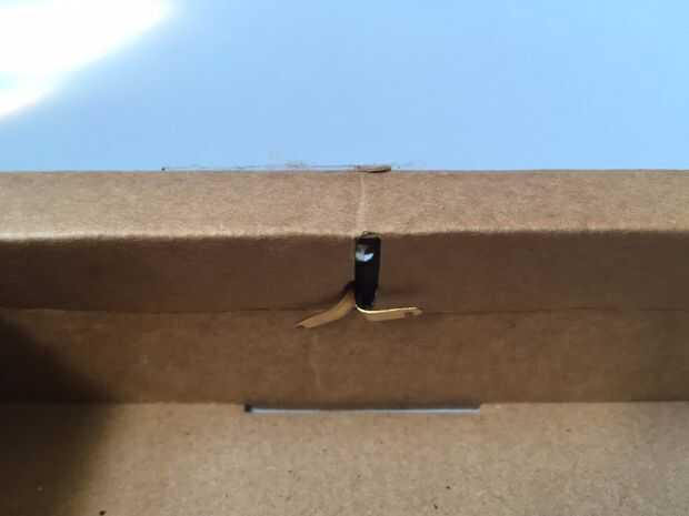 Perfore orificios alinean con elástico superior y hendidura interna en caja. Insertar etiquetas de metal, dejando un poco de juego para permitir el enganche de la banda elástica.